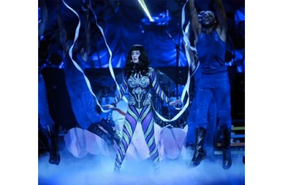 Custom catsuit and corset designed for Katy Perry by The Blonds and painted by Malcolm Stuart.
